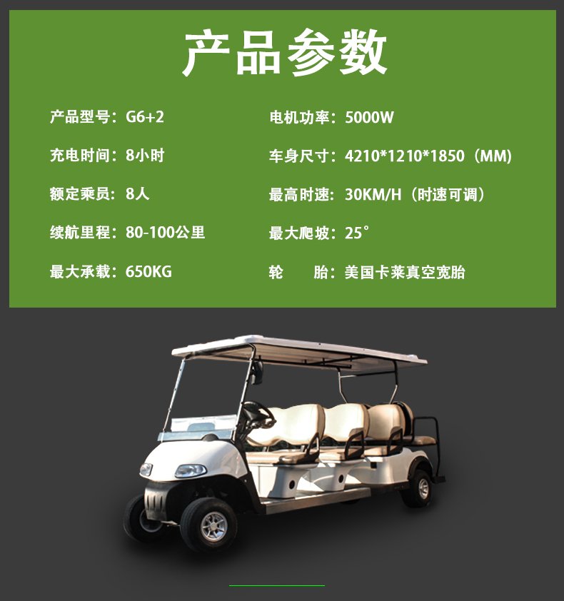 G6+2 電動(dòng)觀光車(chē)高爾夫球車(chē)四輪電瓶看房車(chē)度假村