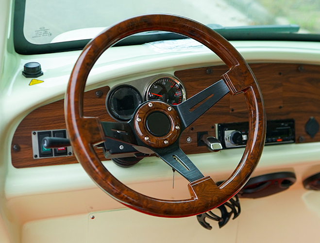 玻璃鋼車身前度高,耐腐蝕,壽命長。 全車采用汽車級優(yōu)質(zhì)油漆,電腦調(diào)漆,專業(yè)噴涂設備,烤漆工藝,色彩亮麗,歷久彌新。 專利前橋及懸掛,不磨輪胎。 整體式后橋、無縫焊接橋